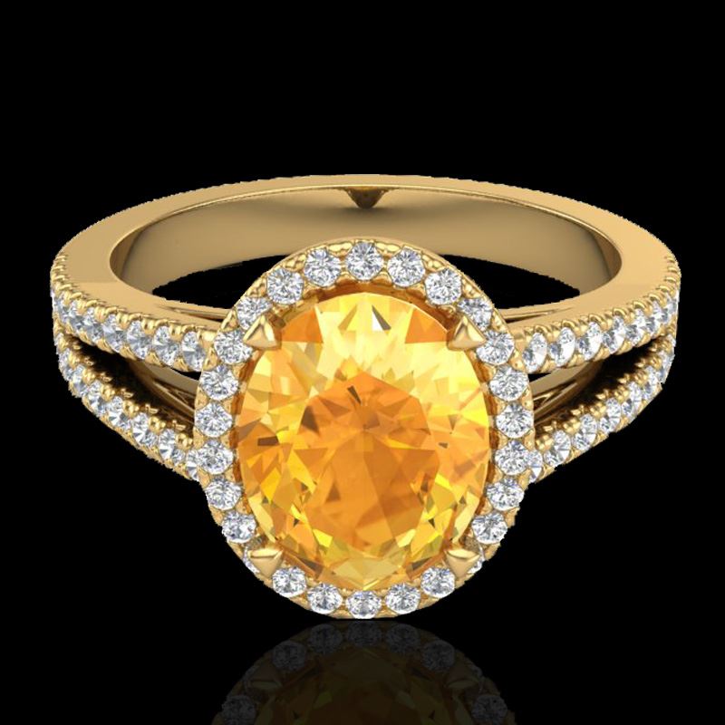 REF-70W9F -20937 ---- 3 CTW Citrine & Micro VS/SI Diamond Halo Solitaire Ring 18K Yellow Gold ---- Luxury Designer Brand Ring Appraised at $4,700 Certificate Number US20937 18k Yellow gold, Ring Size is 7, Ring measuring approx. 1/2" X 1/2" , weighing in total approx. 4.5 grams. Made in the USA and is stamped 18k, Main stone 2.52 carat total weight containing 1 pieces of Translucent Yellow color with AAA quality Oval shape cut Citrine , Stone #2 0.48 carat total weight containing 57 pieces of H-I color with VS/SI quality Round shape cut Diamond