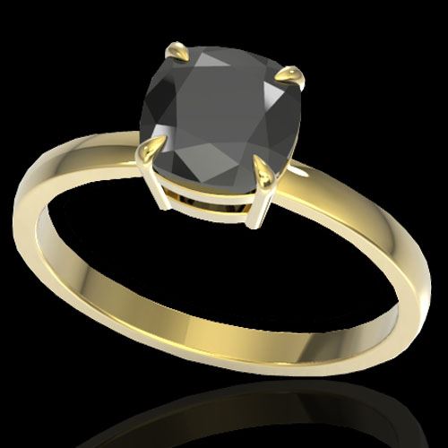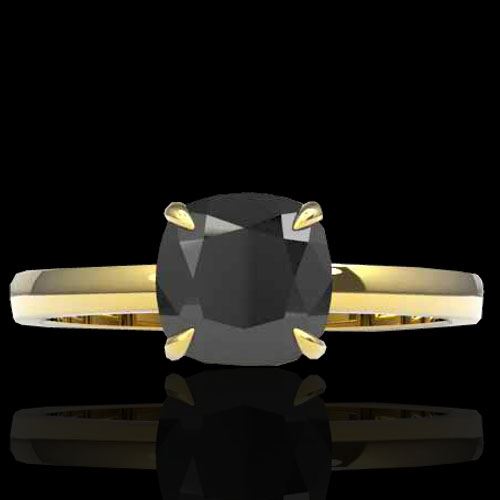 REF-86K4W -22136 ---- 3 CTW Cushion Cut Black VS/SI Diamond Designer Solitaire Ring 18K Yellow Gold ---- Luxury Designer Brand Ring Appraised at $5,250 Certificate Number US22136  18k Yellow gold,  Ring Size is 7, Ring measuring approx. 9 mm x 9 mm, weighing in total approx. 4 grams. Made in the USA and is stamped 18k, Main stone 3 carat total weight containing 1 pieces of Black Opaque color with VS  quality Cushion shape cut Diamond , Stone #2  carat total weight containing  pieces of  color with quality  shape cut