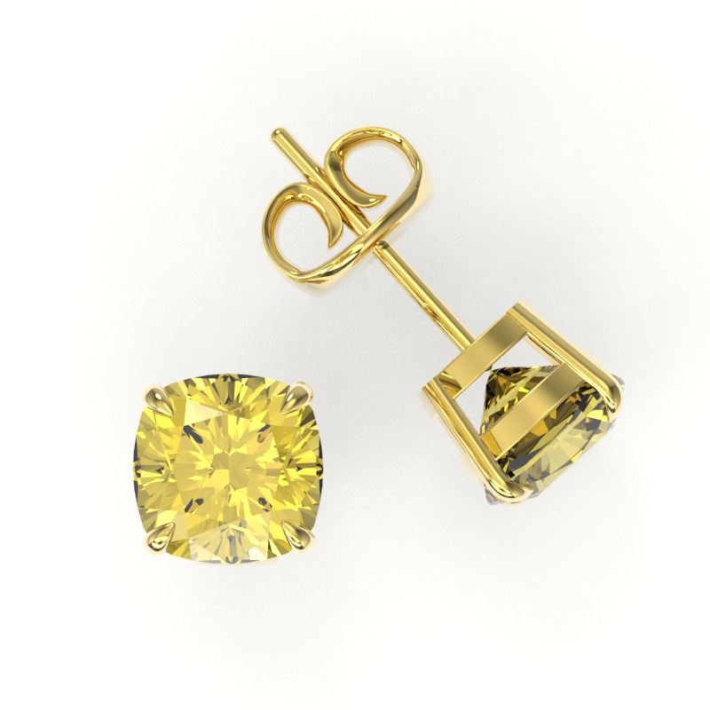 REF-29W3F -21739 ---- 3 CTW Cushion Cut Citrine Designer Solitaire Stud Earrings 18K Yellow Gold ---- Luxury Designer Brand Earring Appraised at $1,750 Certificate Number US21739 18k Yellow gold, Earring Size is 9 Millimeter, Earring measuring approx. 9 mm x 9 mm, weighing in total approx. 2.7 grams. Made in the USA and is stamped 18k, Main stone 3 carat total weight containing 2 pieces of Translucent Yellow color with AAA quality Cushion shape cut Citrine , Stone #2 carat total weight containing pieces of color with quality shape cut