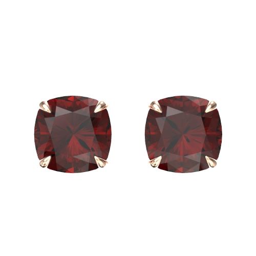 REF-17W3F -21742 ---- 3 CTW Cushion Cut Garnet Designer Solitaire Stud Earrings 14K Rose Gold ---- Luxury Designer Brand Earring Appraised at $1,050 Certificate Number US21742 14k Rose gold, Earring Size is 9 Millimeter, Earring measuring approx. 9 mm x 9 mm, weighing in total approx. 1.9 grams. Made in the USA and is stamped 14k, Main stone 3 carat total weight containing 2 pieces of Saturated purplish Red color with AAA quality Cushion shape cut Garnet , Stone #2 carat total weight containing pieces of color with quality shape cut