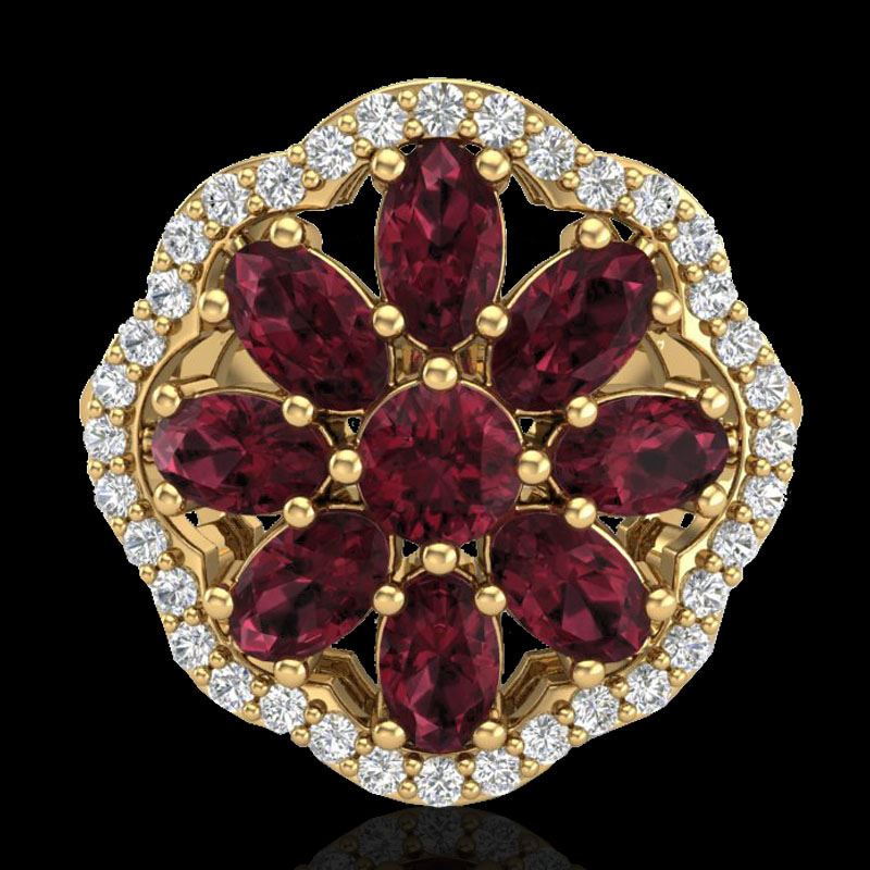 REF-52A2X -20783 ---- 3 CTW Garnet & VS/SI Diamond Cluster Designer Halo Ring 10K Yellow Gold ---- Luxury Designer Brand Ring Appraised at $3,450 Certificate Number US20783 10k Yellow gold, Ring Size is 7, Ring measuring approx. 7/8"X3/4" , weighing in total approx. 4.5 grams. Made in the USA and is stamped 10k, Main stone 2.35 carat total weight containing 8 pieces of Saturated purplish Red color with AAA quality Oval shape cut Garnet , Stone #2 0.15 carat total weight containing 1 pieces of Saturated purplish Red color with AAA quality Round shape cut Garnet , Stone #3 0.5 carat total weight containing 33 pieces of G-H color with VS/SI quality Round shape cut Diamond