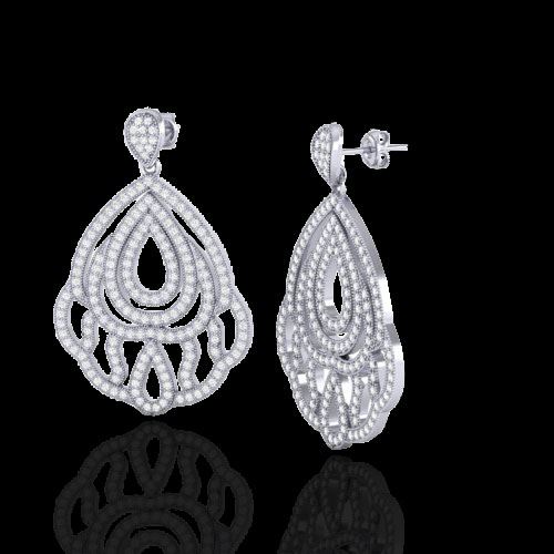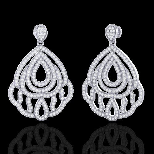 REF-280H2A -21147 ---- 3 CTW Micro Pave VS/SI Diamond Earrings Designer 18K White Gold ---- Luxury Designer Brand Earring Appraised at $15,400 Certificate Number US21147 18k White gold, Earring Size is 1 1/2 Inches, Earring measuring approx. 1 1/2" X 1" , weighing in total approx. 14 grams. Made in the USA and is stamped 18k, Main stone 1.5 carat total weight containing 344 pieces of H-J color with VS/SI quality Round shape cut Diamond , Stone #2 carat total weight containing pieces of color with quality shape cut