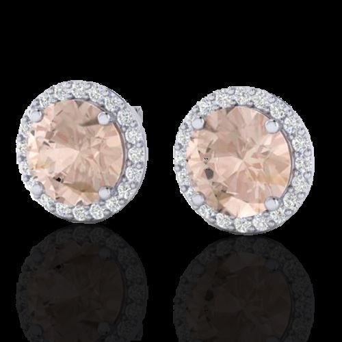 REF-81W3F -21497 ---- 3 CTW Morganite & Halo VS/SI Diamond Micro Pave Earrings Solitaire 18K White Gold ---- Luxury Designer Brand Earring Appraised at $5,350 Certificate Number US21497 18k White gold, Earring Size is 10 Millimeter, Earring measuring approx. 10 mm round, weighing in total approx. 3.5 grams. Made in the USA and is stamped 18k, Main stone 2.5 carat total weight containing 2 pieces of Medium Orange Pink color with AAA quality Round shape cut Morganite , Stone #2 0.5 carat total weight containing 40 pieces of H-I color with VS/SI quality Round shape cut Diamond