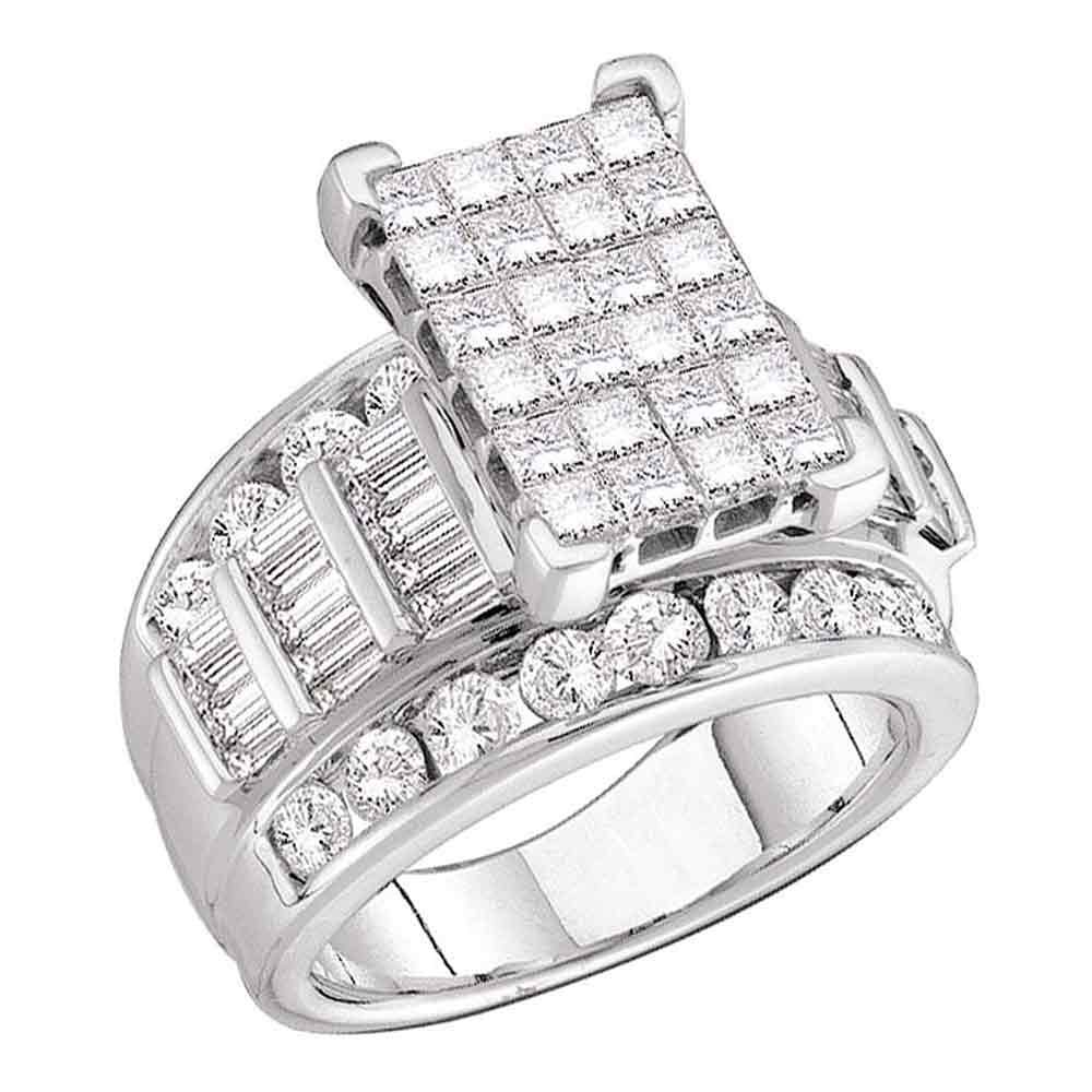 REF-240Y2X- SKU: GD111423 ---- 3 CTW Princess Diamond Cluster Bridal Engagement Ring 10KT White Gold