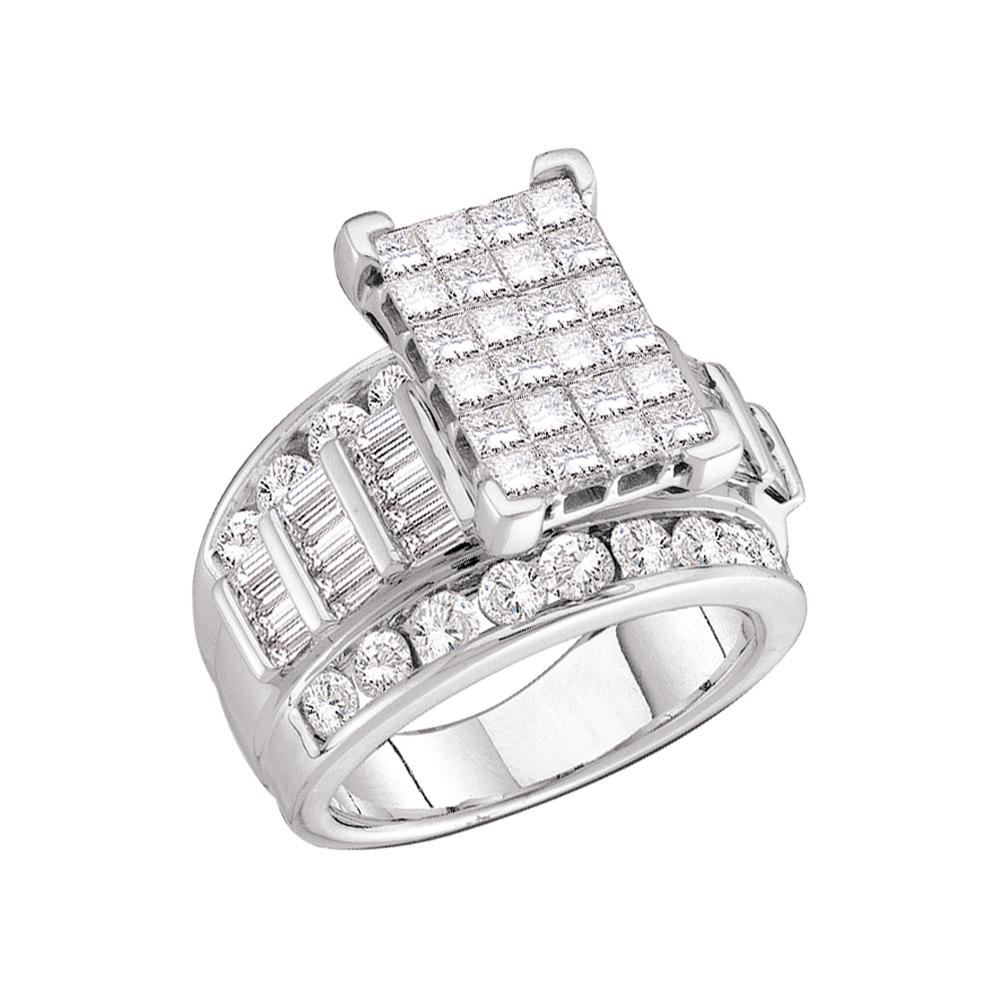 REF-274K4W- SKU: GD109370 ---- 3 CTW Princess Diamond Cluster Bridal Engagement Ring 14KT White Gold