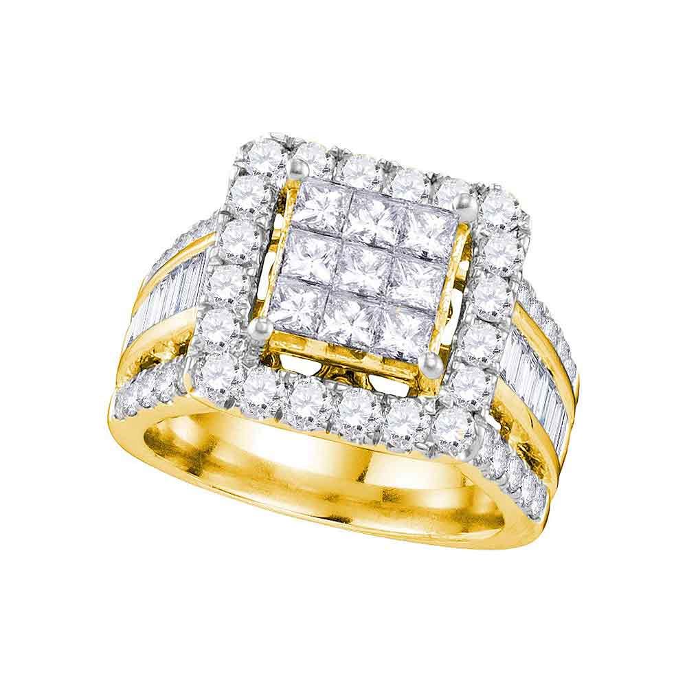 REF-299Y9X- SKU: GD107332 ---- 3 CTW Princess Diamond Cluster Bridal Engagement Ring 14KT Yellow Gold