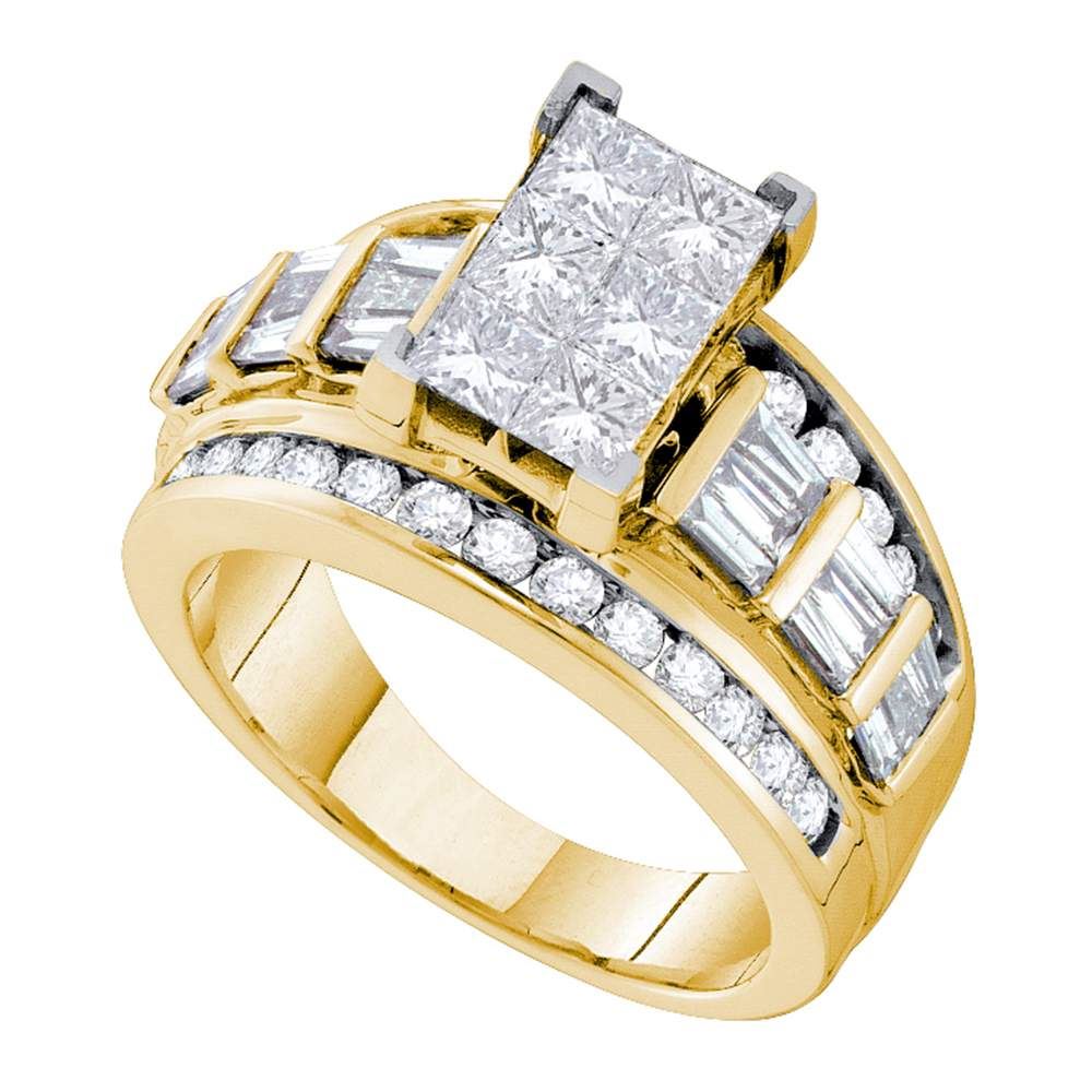 REF-420H2M- SKU: GD56575 ---- 3 CTW Princess Diamond Cluster Bridal Engagement Ring 14KT Yellow Gold