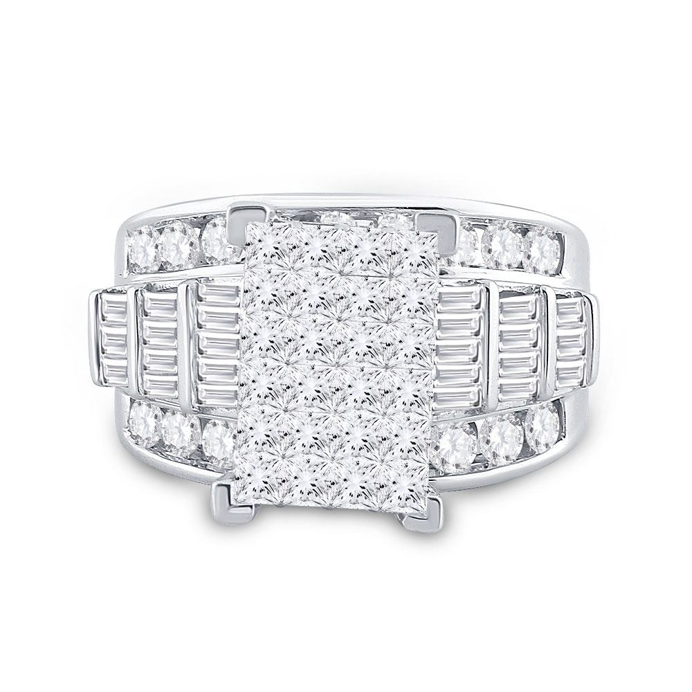 14kt White Gold Womens Princess Diamond Cluster Bridal Wedding Engagement Ring 3.00 Cttw Size 5
