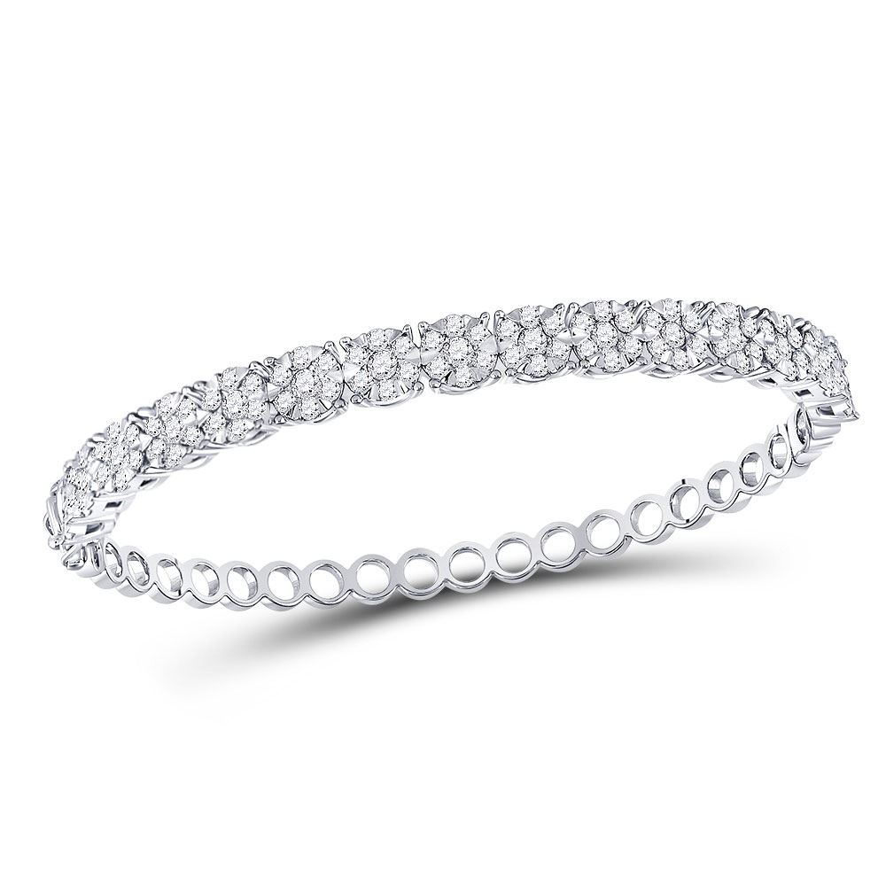 14kt White Gold Womens Round Diamond Flower Cluster Bangle Bracelet 3.00 Cttw