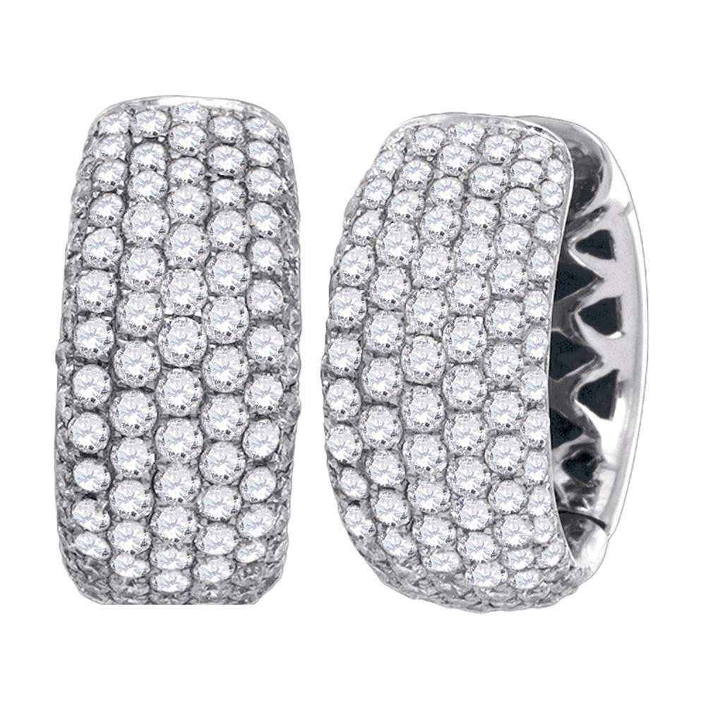 REF-261F5M ---- 3 CTW Round Pave-set Diamond Five Row Hoop Earrings 14kt White Gold