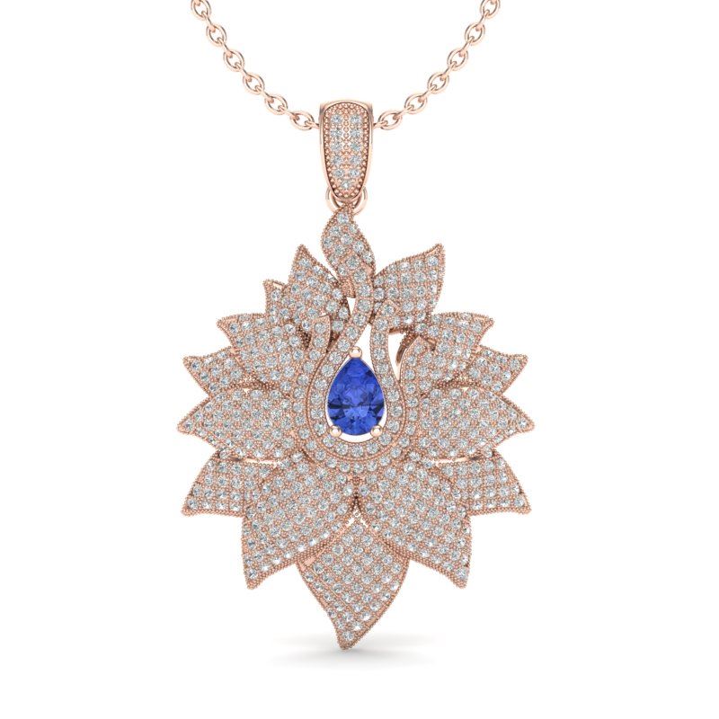 REF-257H3A -22573 ---- 3 CTW Tanzanite & Micro Pave VS/SI Diamond Designer Necklace 18K White Gold ---- Luxury Designer Brand Necklace Appraised at $19,800 Certificate Number US22573 18k White gold, Necklace Size is 16 Inches, Necklace measuring approx. 1 3/4" X 1 1/4", weighing in total approx. 13 grams. Made in the USA and is stamped 18k, Main stone 0.75 carat total weight containing 1 pieces of Intense Violet Blue color with AAA quality Pear shape cut Tanzanite , Stone #2 2.25 carat total weight containing 269 pieces of H-I color with VS/SI quality Round shape cut Diamond