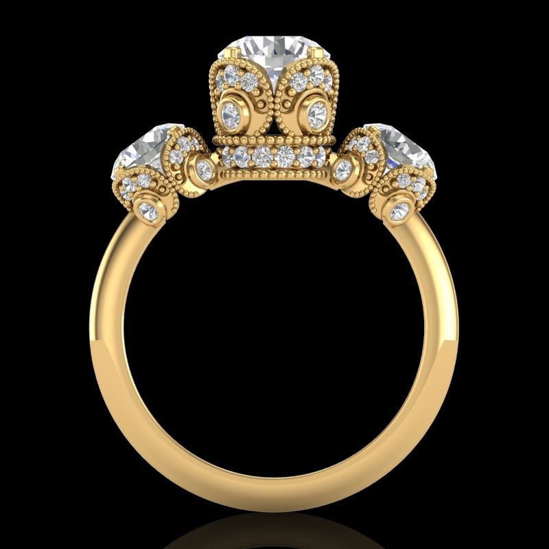 REF-649M3H -36868 ---- 3 CTW VS/SI Diamond Solitaire Art Deco 3 Stone Ring 18K Yellow Gold ---- Luxury Designer Brand 3 stone ring Appraised at $39,250 Certificate Number US36868  18k Yellow gold,  3 stone ring Size is 7, 3 stone ring measuring approx. Uniform, weighing in total approx. 5.7 grams. Made in the USA and is stamped 18k, Main stone 1 carat total weight containing 1 pieces of H-J color with VS/SI quality Round shape cut Diamond , Stone #2 1.14 carat total weight containing 2 pieces of H-I color with  VS/SI quality Round shape cut Diamond , Stone #3 0.86 carat total weight containing 84 pieces of G-H color with VS/SI quality  Round shape cut Diamond
