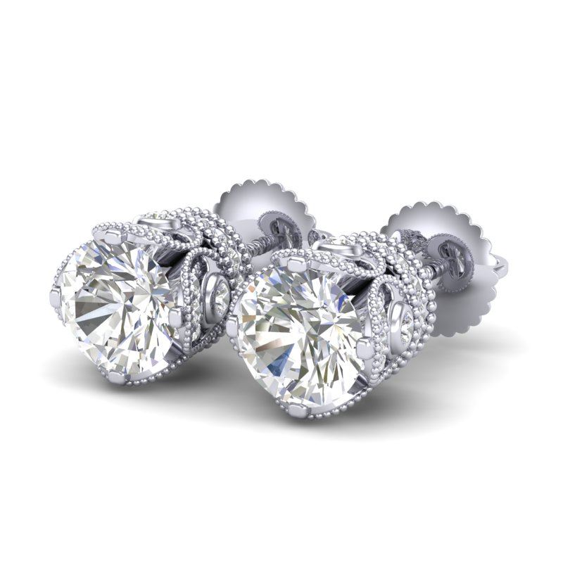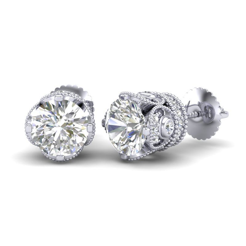 3 CTW VS/SI Diamond Solitaire Art Deco Stud Earrings 18K White Gold ---- Luxury Designer Brand Earring Appraised Retail Price at $39,100  ---- SKU Number US36860 18k White gold Earring Size is Larger, Earring measuring approx. Uniform, weighing in total approx. 6 grams. Made in the USA and is stamped 18k, Main stone 2.00 carat total weight containing 2 pieces of H-J color with VS/SI quality Round shape cut Diamond , Stone #2 1 carat total weight containing 76 pieces of H-I color with VS/SI quality Round shape cut