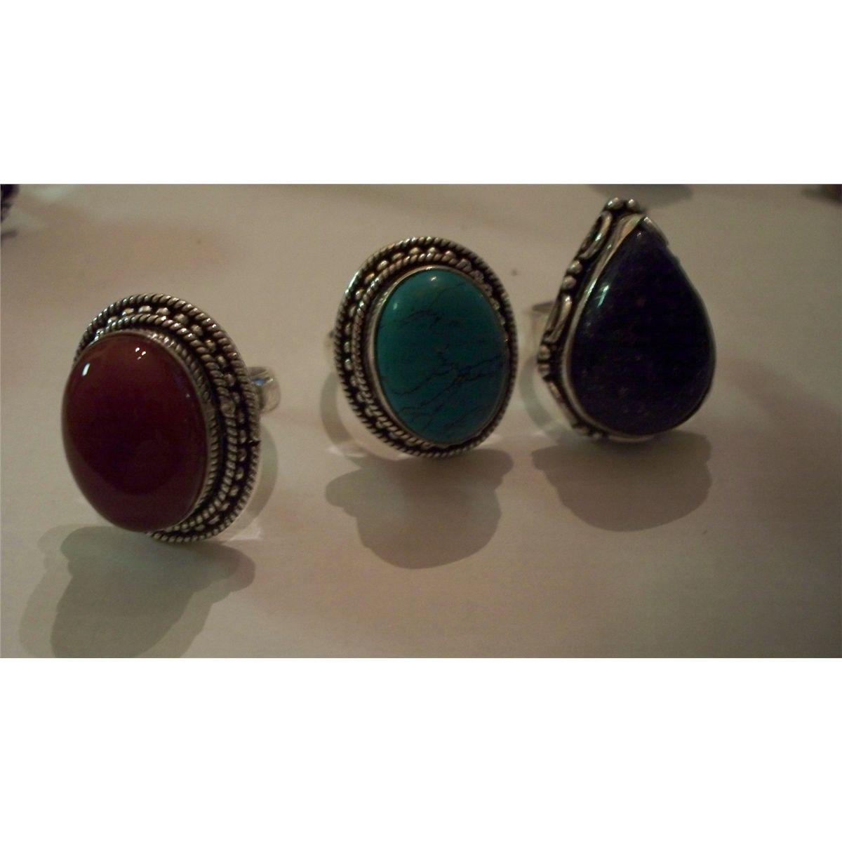 3 CUSTOM MADE STERLING SILVER GEMSTONE LADIES RINGS, 40 GRAMS