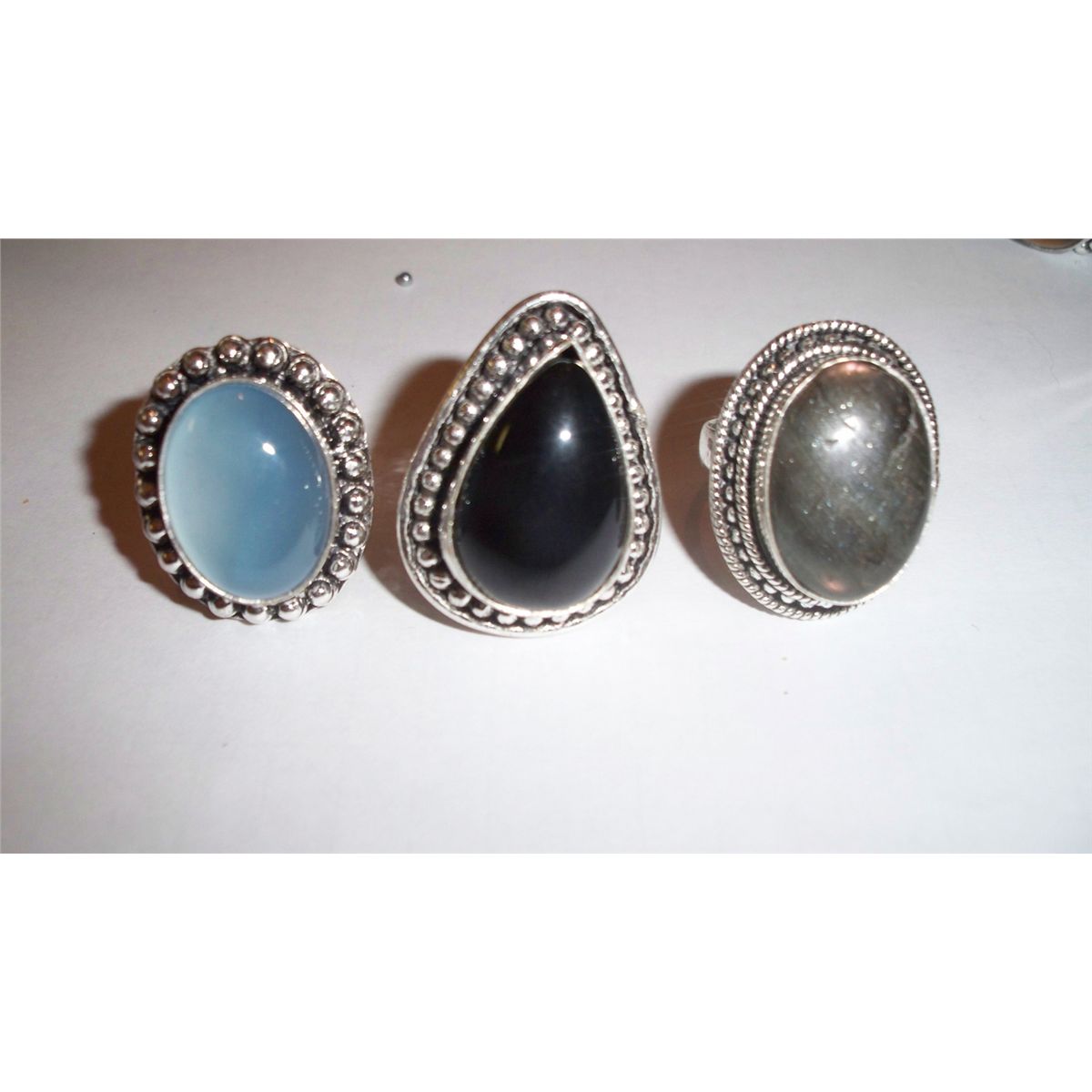 3 CUSTOM MADE STERLING SILVER GEMSTONE LADIES RINGS, 40 GRAMS
