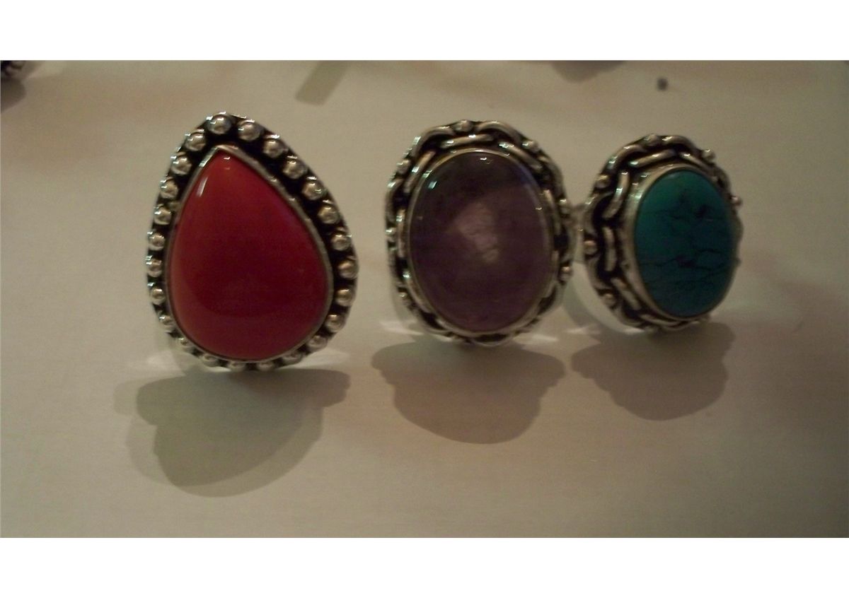 3 CUSTOM MADE STERLING SILVER GEMSTONE LADIES RINGS, 40 GRAMS