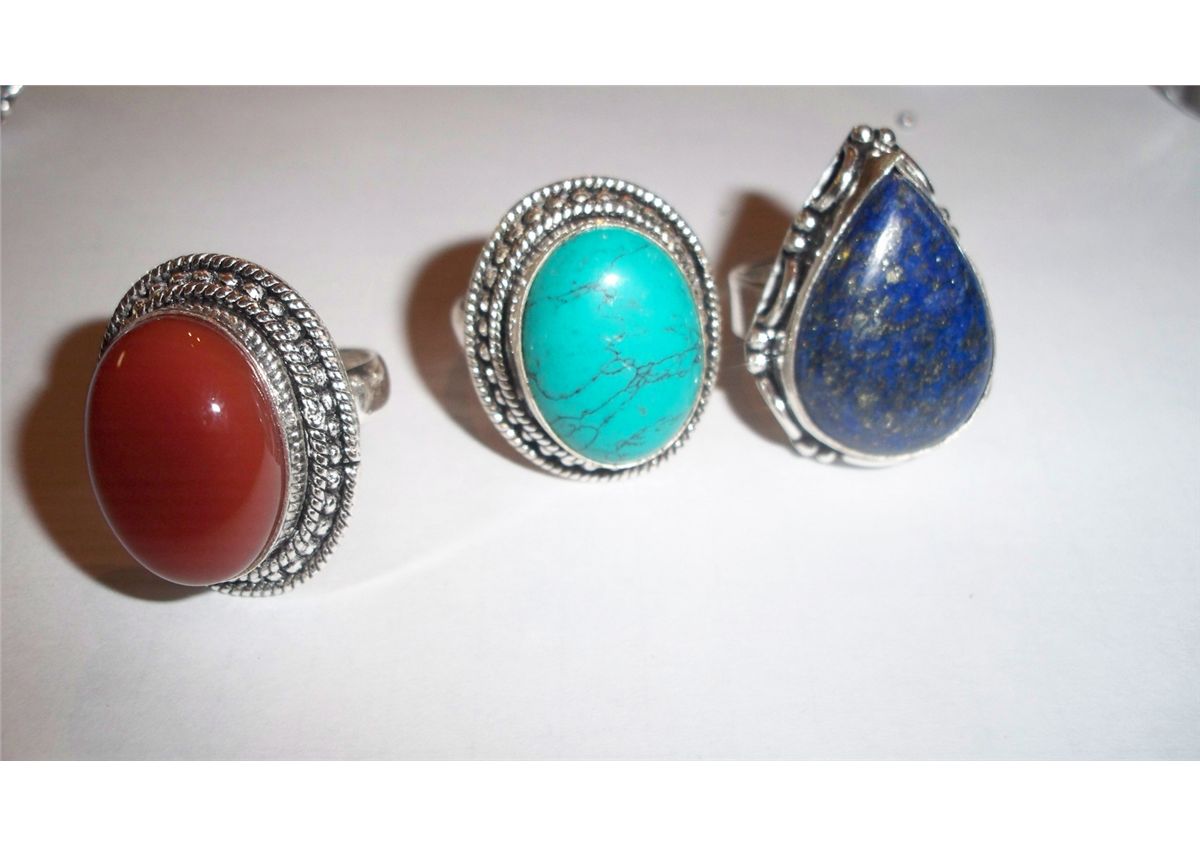 3 CUSTOM MADE STERLING SILVER GEMSTONE LADIES RINGS, 40 GRAMS