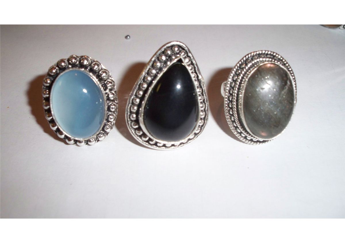 3 CUSTOM MADE STERLING SILVER GEMSTONE LADIES RINGS, 40 GRAMS