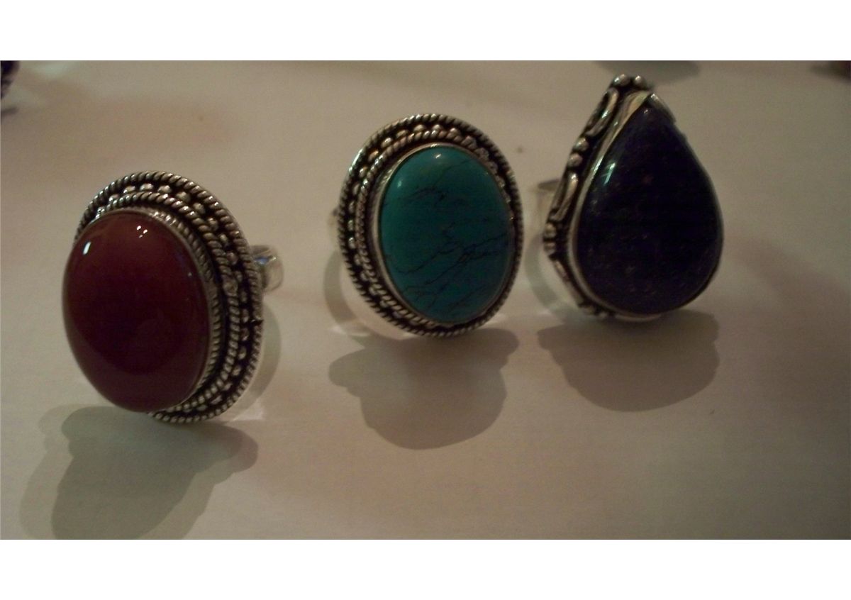 3 CUSTOM MADE STERLING SILVER GEMSTONE LADIES RINGS, 40 GRAMS
