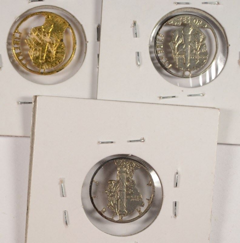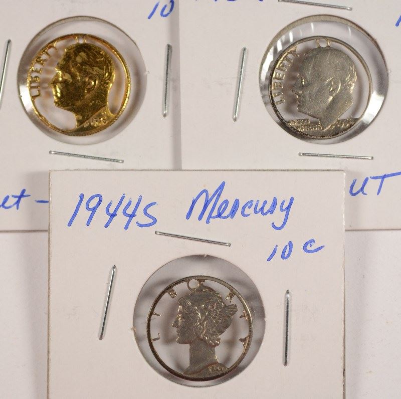 3 CUT-OUT PENDANTS - 1944S MERCURY, 1956 ROOSEVELT, & 1976 ROOSEVELT DIMES