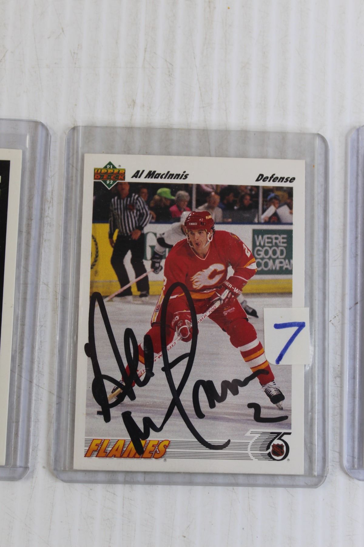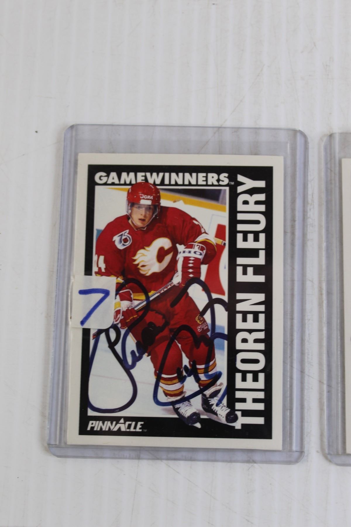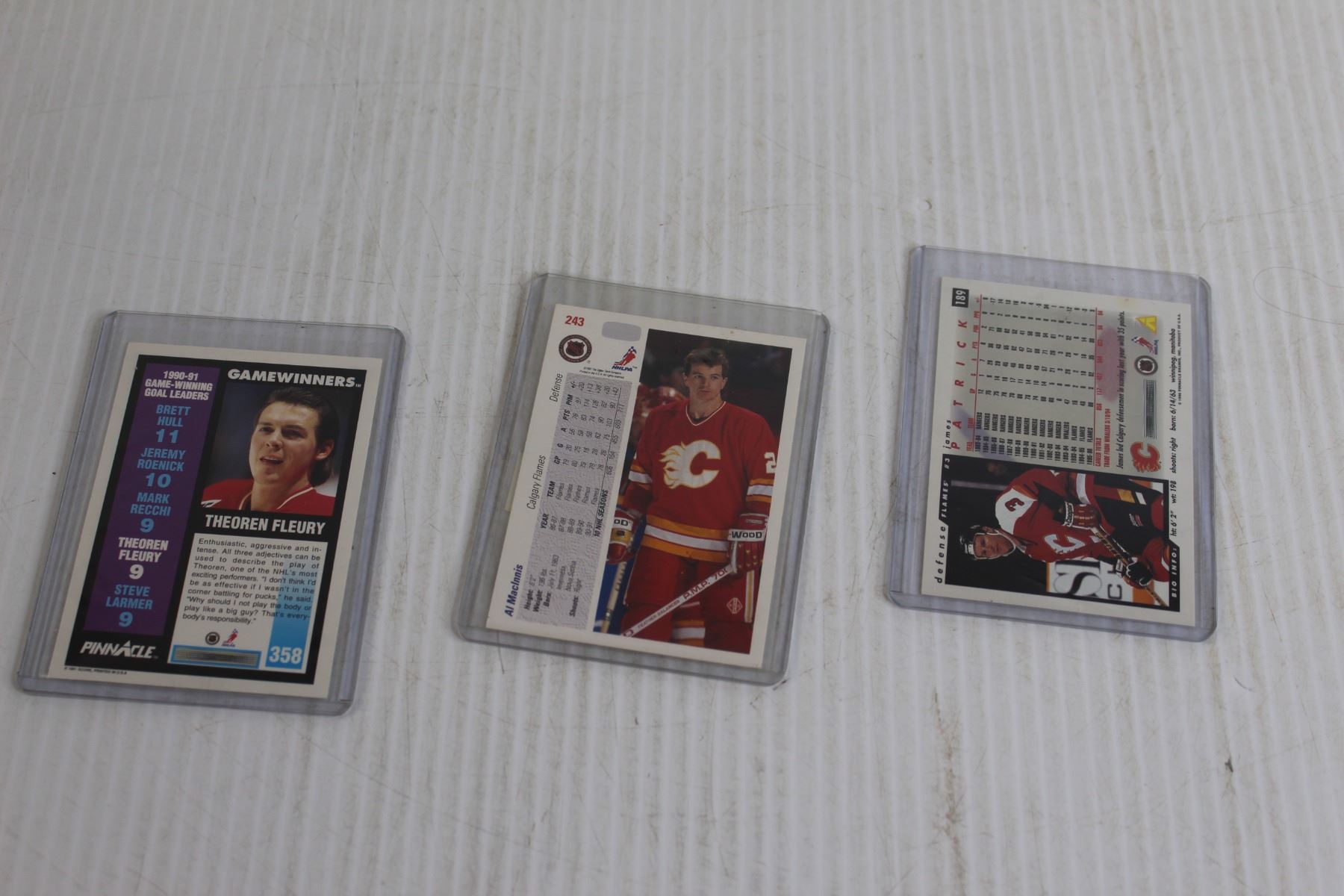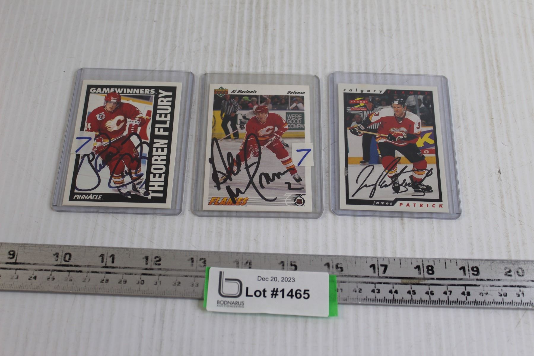 (3) Calgary Flames Autographed NHL Hockey Cards - Fleury, MacInnis, Patrick (Not Authenticated)