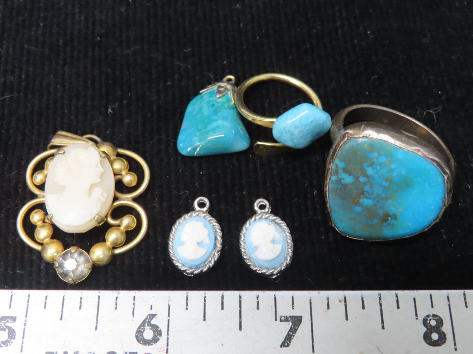3 Cameo Pendants, 2 Turquoise rings, & 1 Turquoise Pendent (Stones authenticity unchecked)