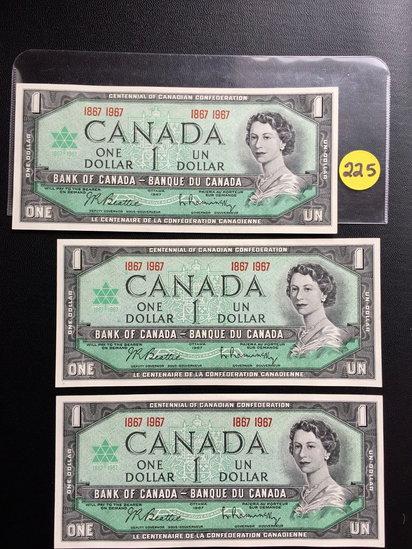 3 Canada 1867-1967 UNC $1 bills Beattie/Rasminsky