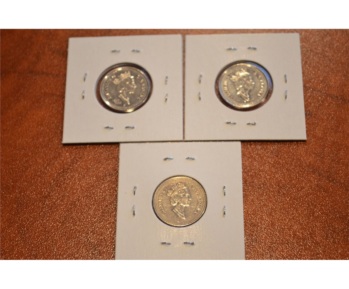 (3) Canada Nickles: 1992, 01, 02 BUNC