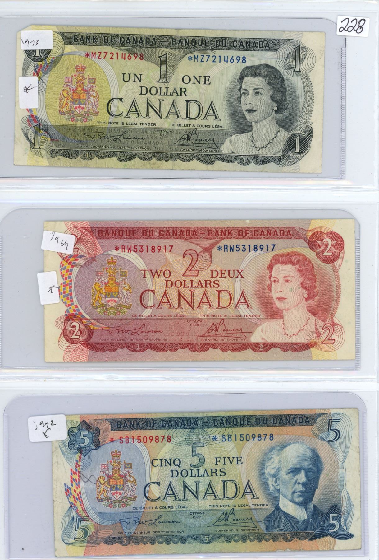 3 Canada Replacement * Notes - 1973 $1, 1974 $2, 1972 $5