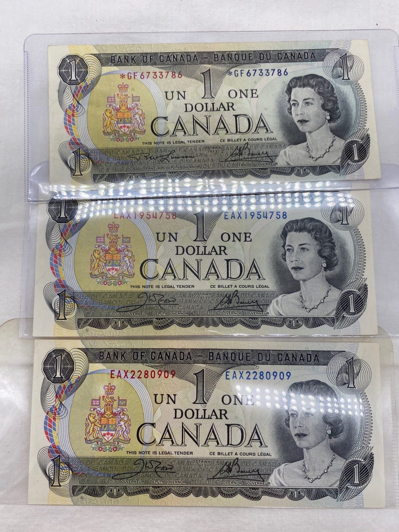 3 Canadian 1973 $1.00 Bills Prefix *GF EAX
