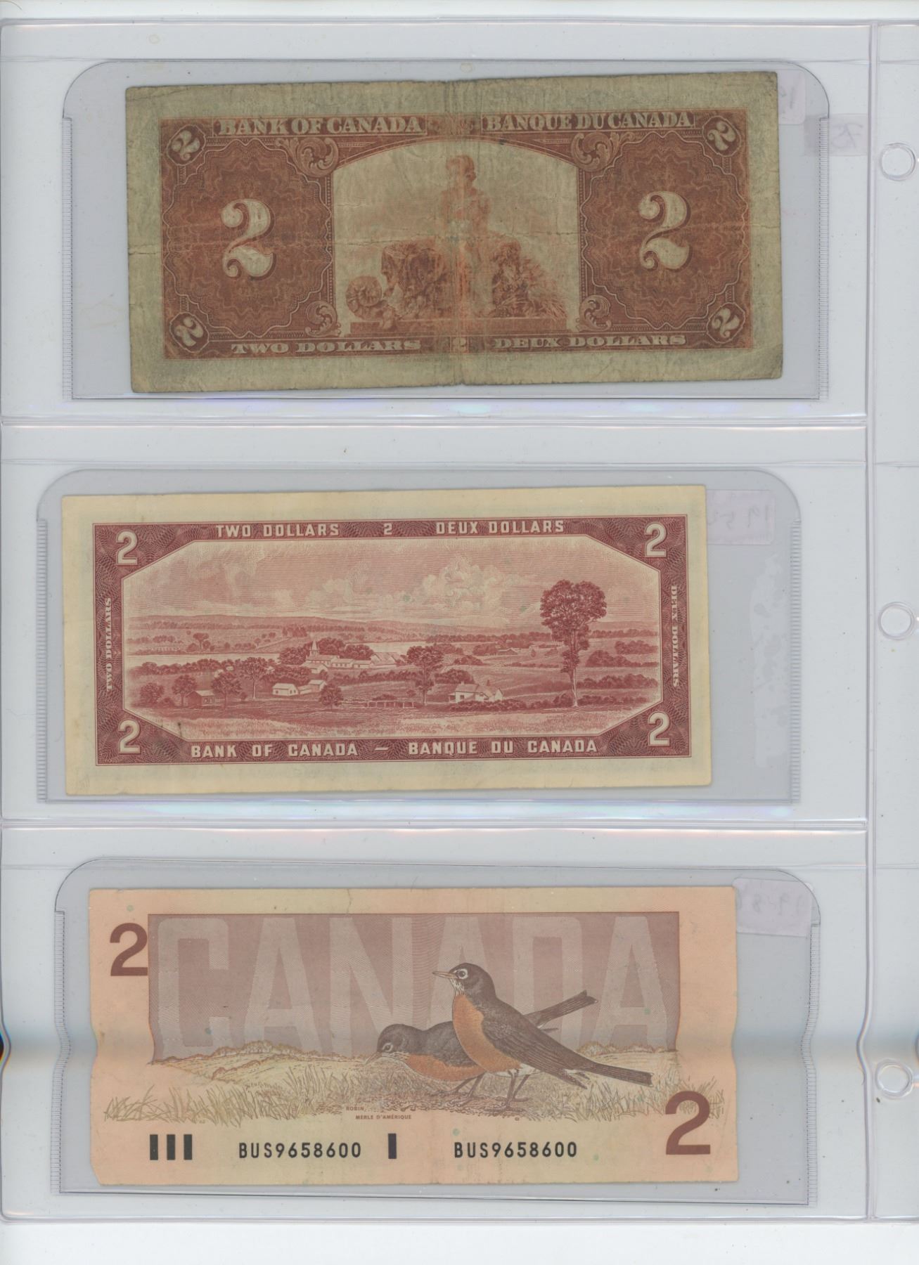 3 Canadian $2 bills - 1937 , 1954 , 1986