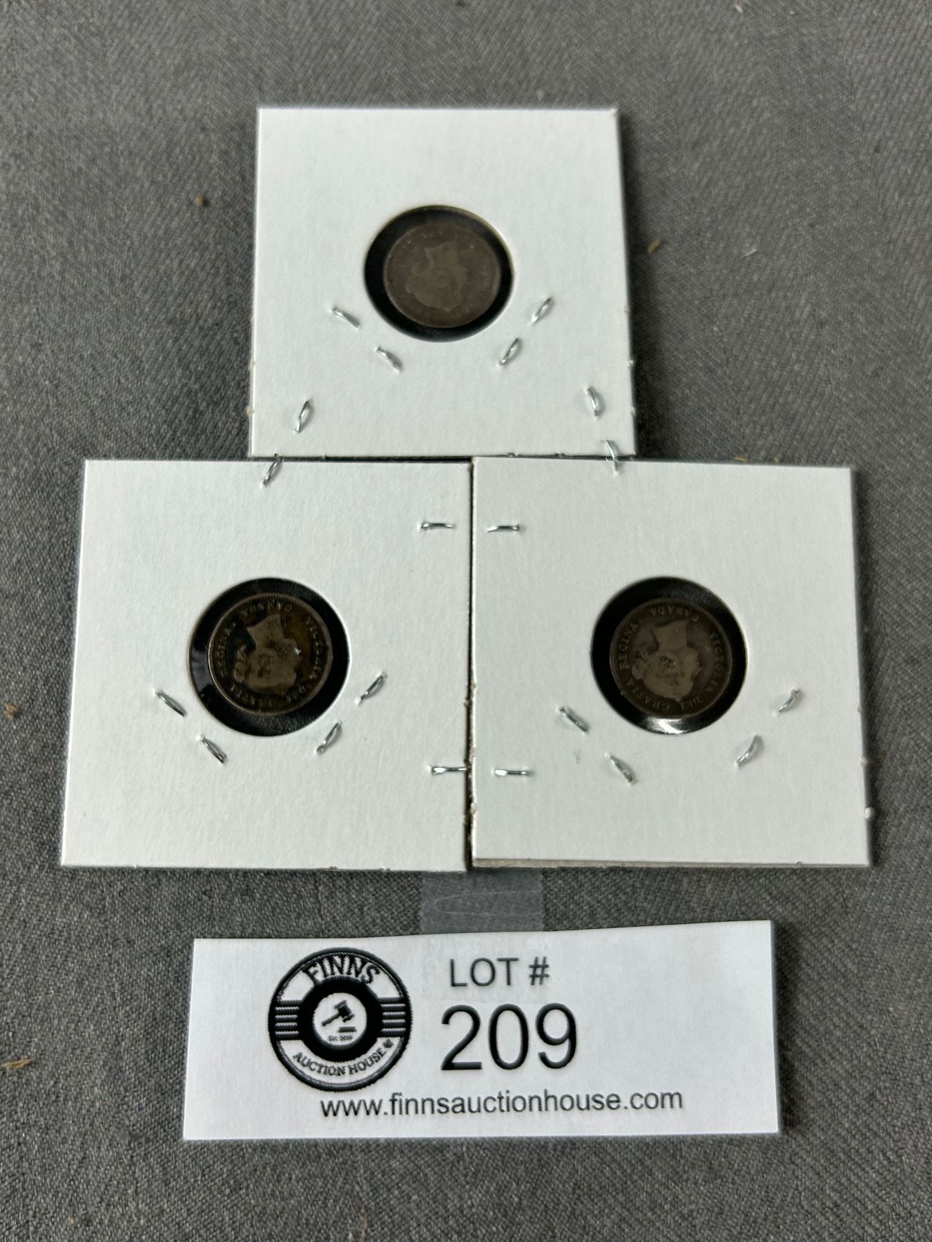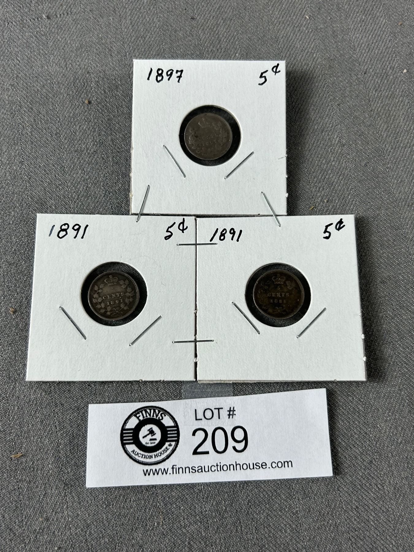 3 Canadian 5cent Coins. 2 - 1891 & 1 - 1897
