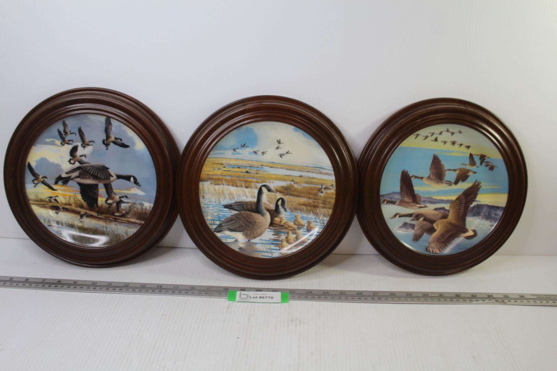 (3) Canadian Geese Collector Plates in Wooden Frames - By Donald Pense