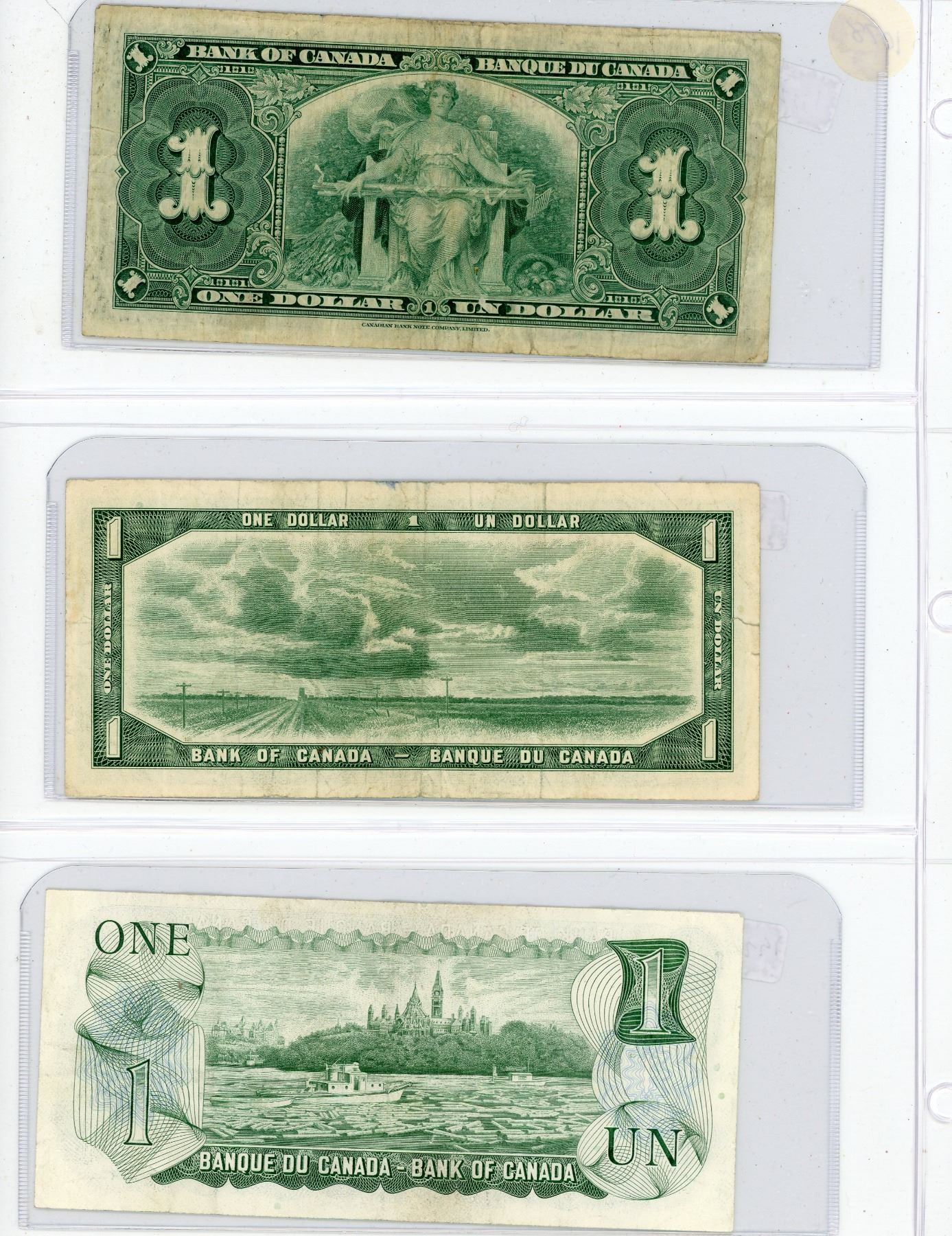 3 Canadian One Dollar Bank Notes 1937, 1954, and 1973