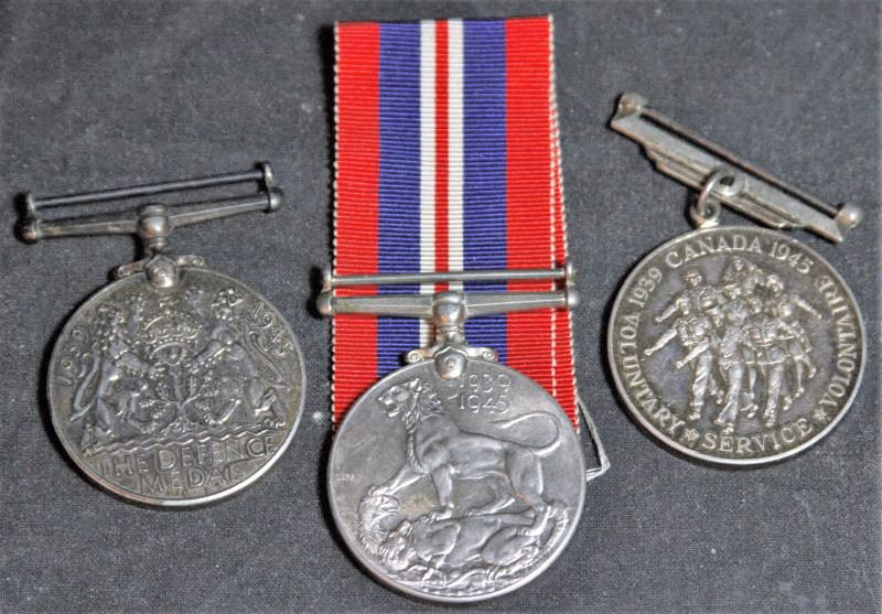 3 Canadian Silver WWII Military Service Medals - 1 Original Ribbon -