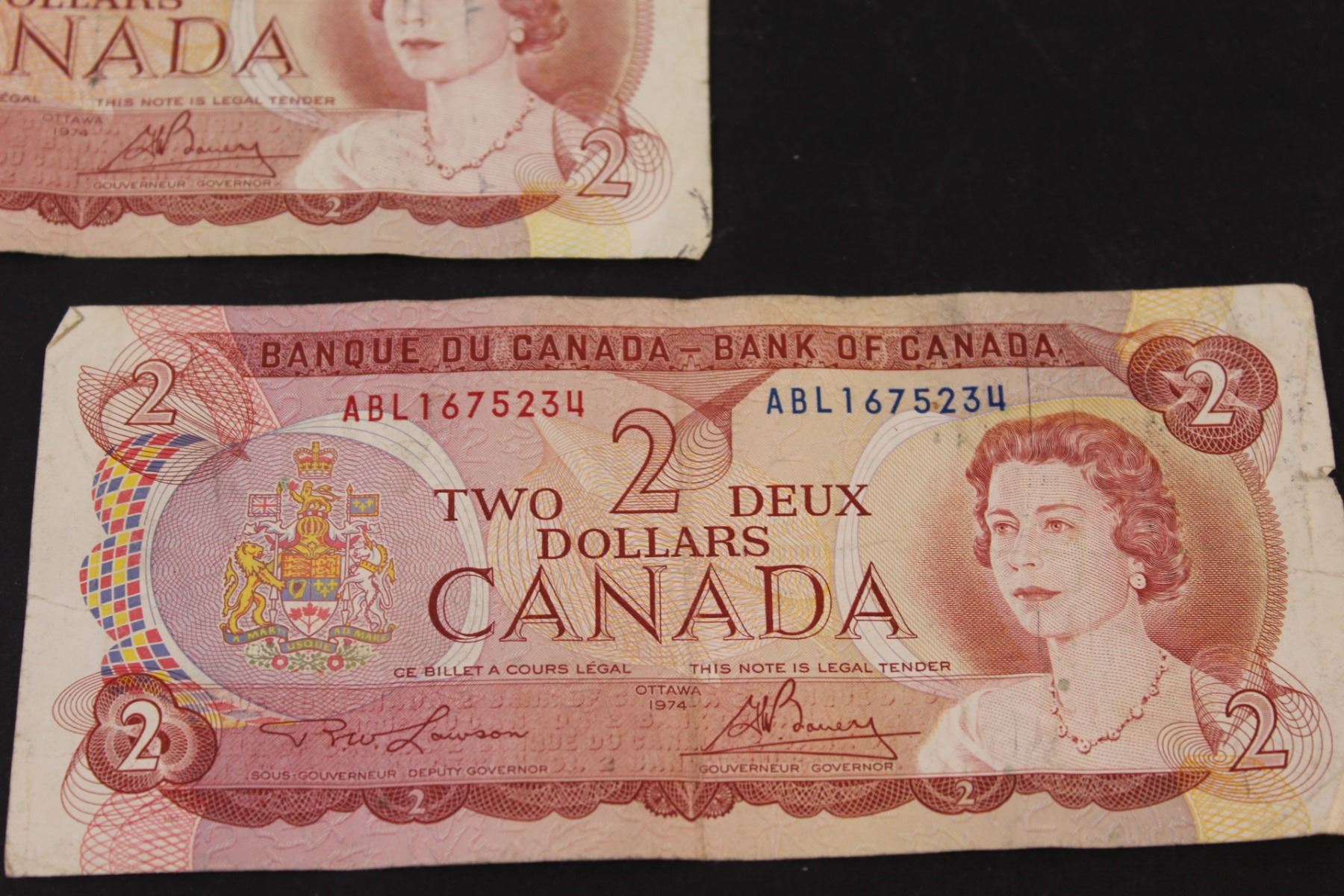(3) Canadian Two Dollar Bills (1974)