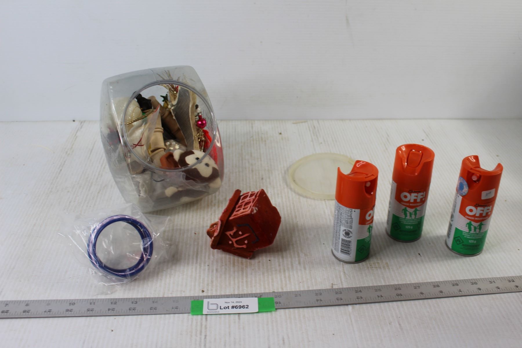 (3) Cans Of Off Spray, Assorted Christmas Ornaments Decorations