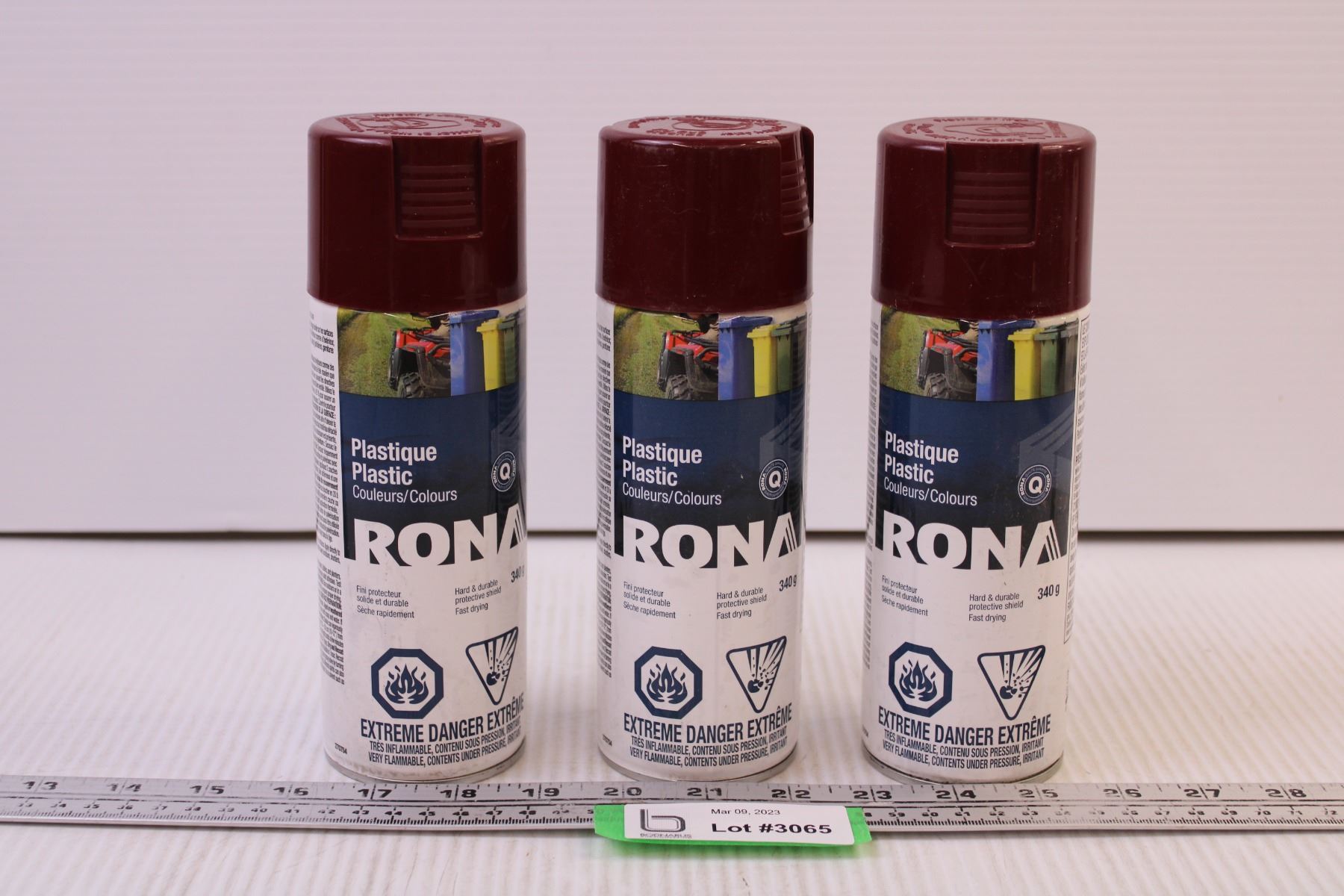 (3) Cans of Rona Plastic Spray Paint in Burgundy