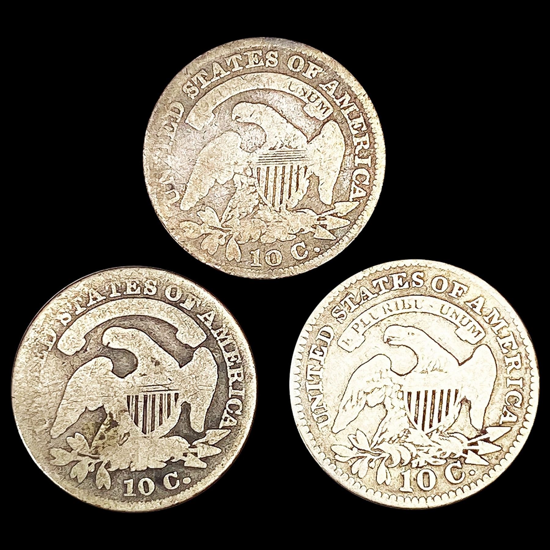 (3) Cap Bust Dimes (1827, 1829, 1834) NICELY CIRC