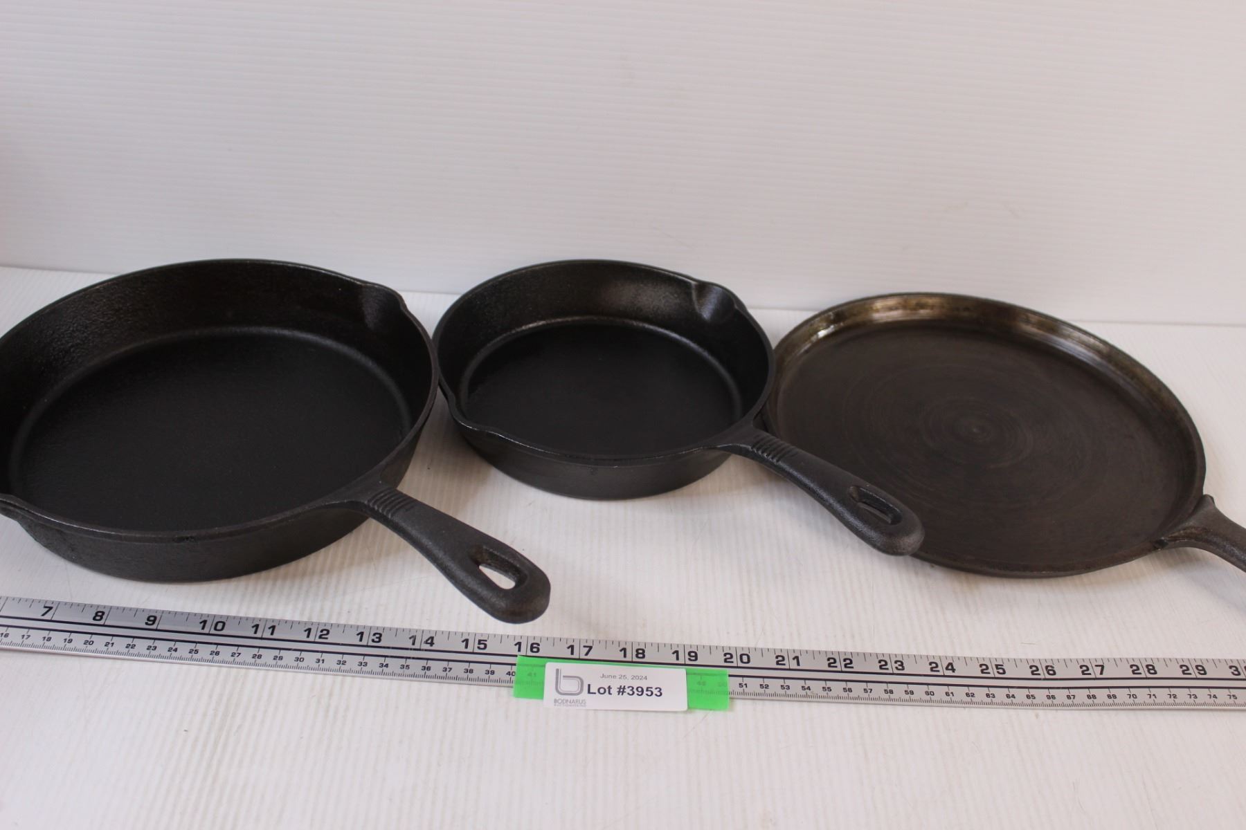 (3) Cast Iron Frying Pans - Freshly Oiled