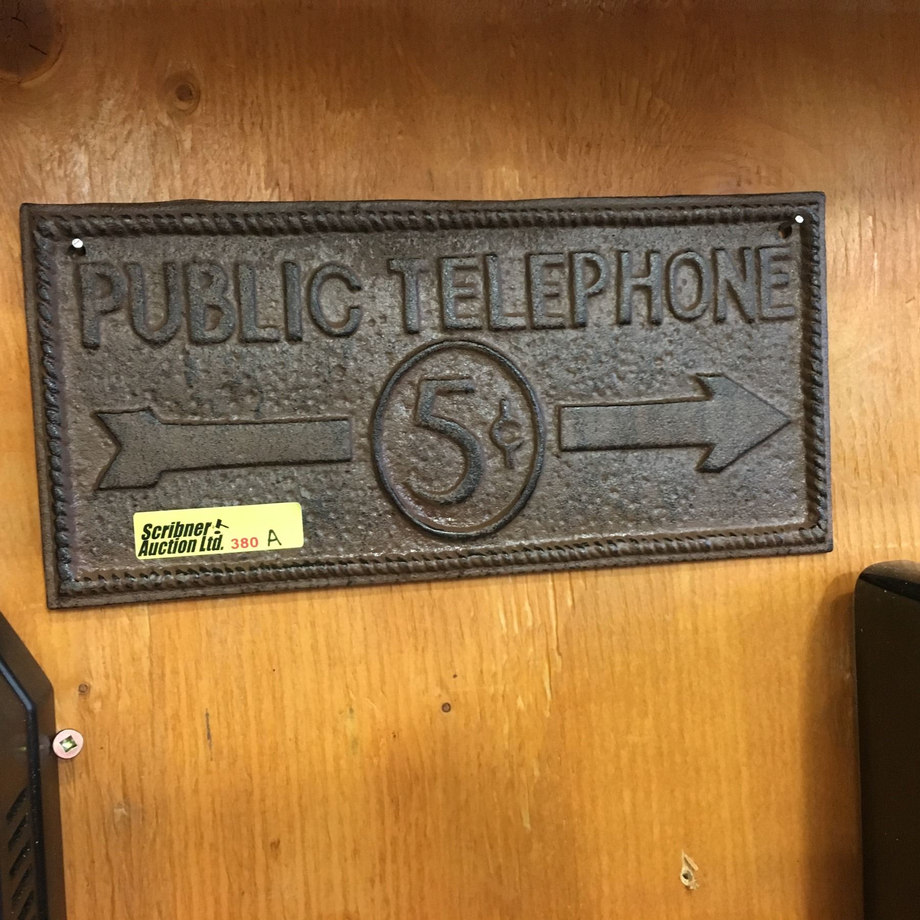 3 Cast Signs (9" x 4") "Public Telephone 5¢"