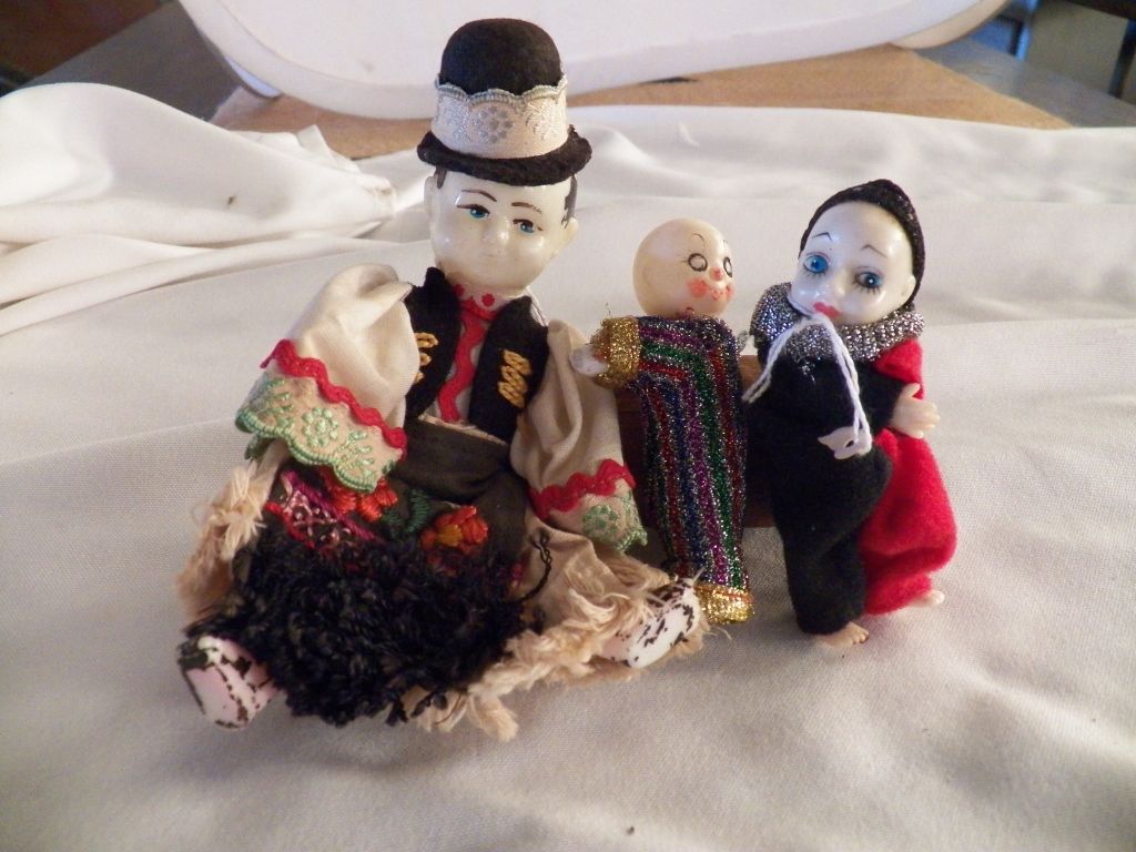3- Celluloid Dolls approx man with hat 6", other 2 are 4"
