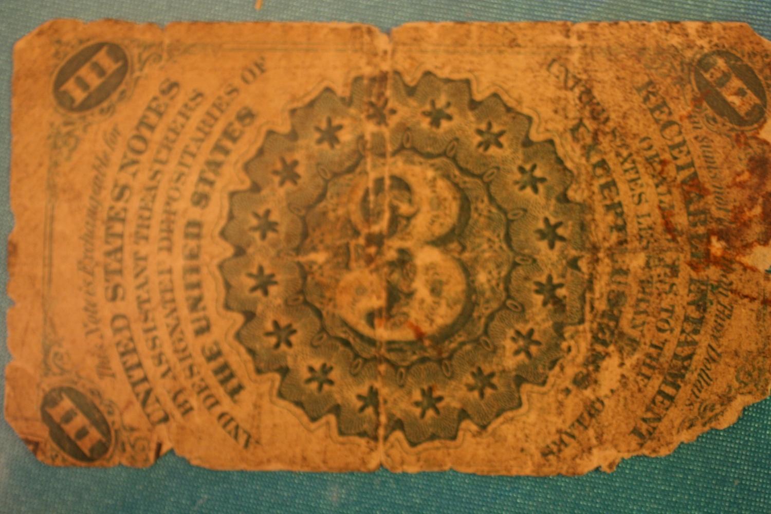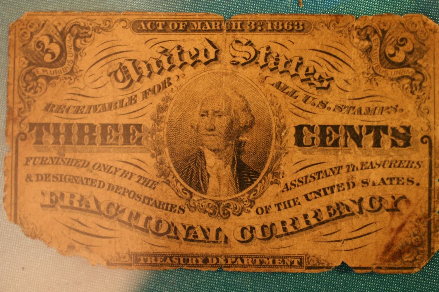 3 Cent Fractional Currency (Damaged)