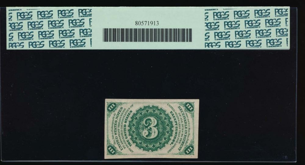 One 3 Cent Fractional Currency Note PCGS 64PPQ.