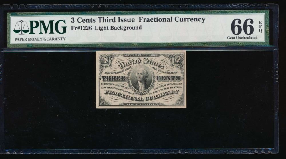 One 3 Cent Fractional Currency Note PMG 66EPQ.
