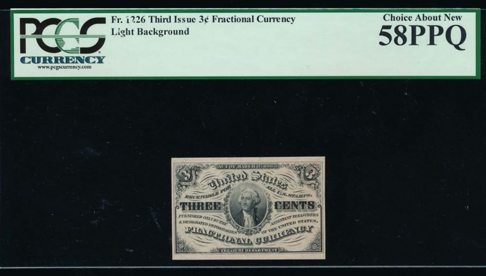 One 3 Cent Third Issue Fractional Note PCGS 58PPQ.