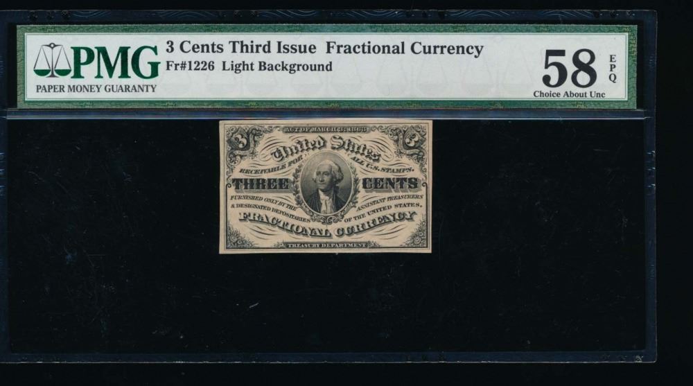 One 3 Cent Third Issue Fractional Note PMG 58EPQ.