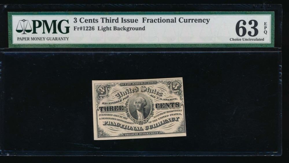 One 3 Cent Third Issue Fractional Note PMG 63EPQ.