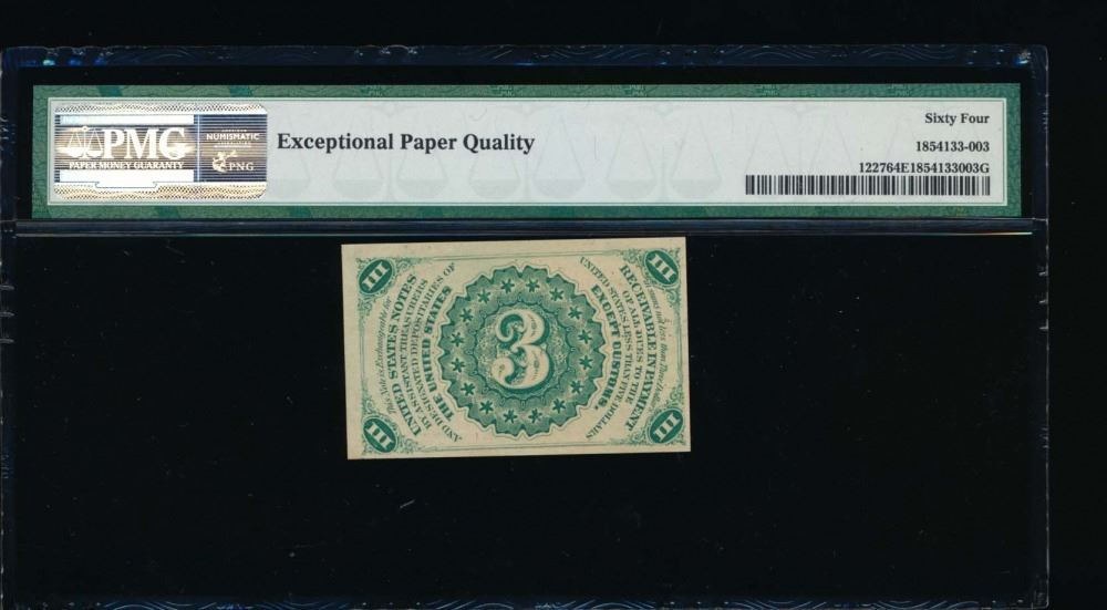 One 3 Cent Third Issue Fractional Note PMG 64EPQ.