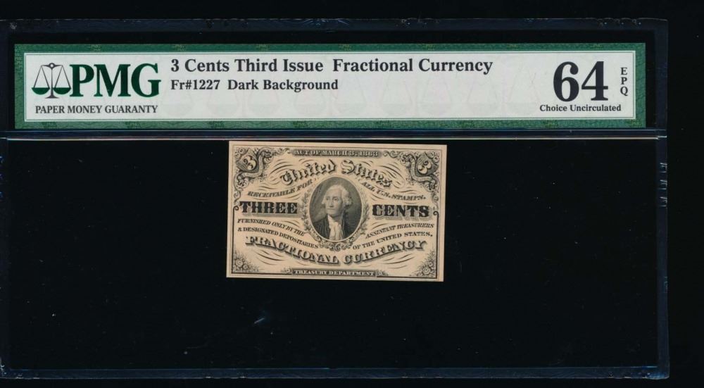 One 3 Cent Third Issue Fractional Note PMG 64EPQ.